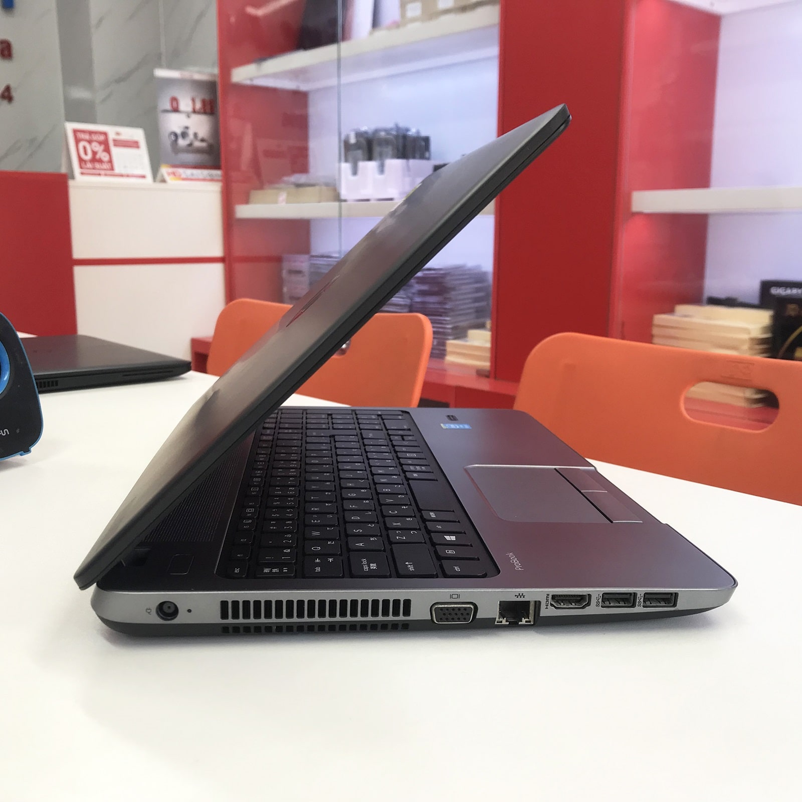Cạnh trái có Jack nguồn, VGA, LAN, HDMI, 2X USB 3.0
