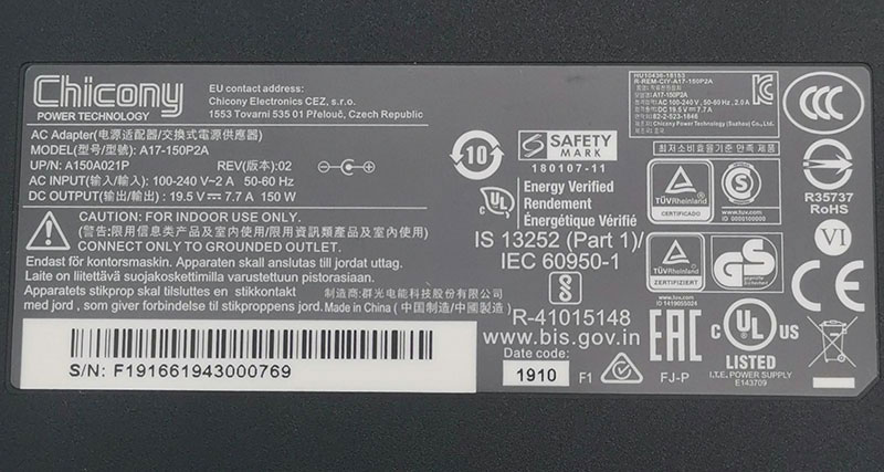 | Điện áp đầu Ra : 19.5V-7.7A | Bảo hành : 6 - 12 Tháng |