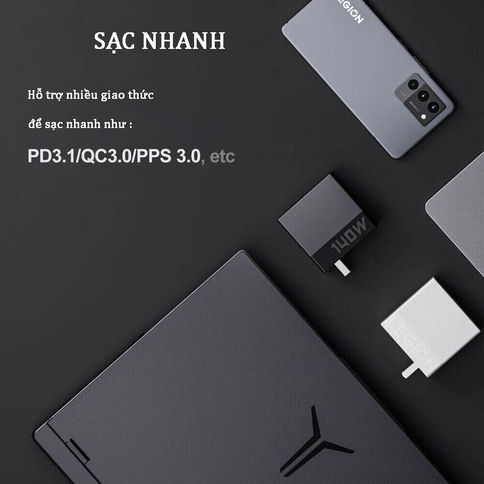 Bộ sạc Lenovo Legion C140 | Công nghệ GaN | Type-C Công suất 140W ( 5V-3A, 9V-3A, 15V-3A, 20V- 6.75A, 28V-5A 140W MAX )